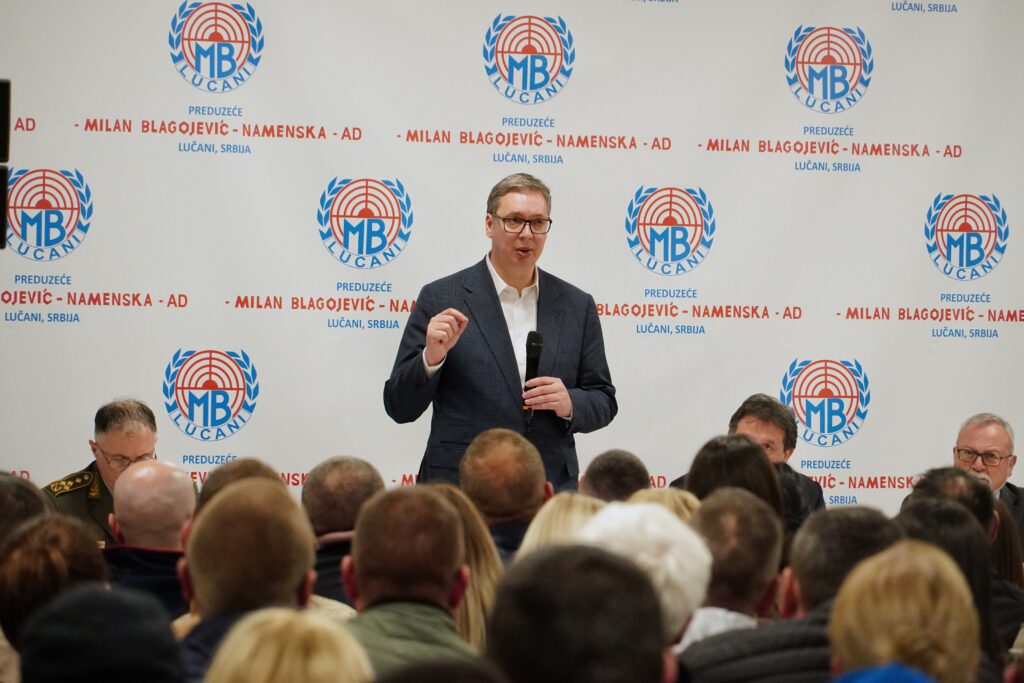 Predsednik Srbije Aleksandar Vučić izjavio je , u razgovoru sa radnicima fabrike „Milan Blagojević-Namenska“ u Lučanima, da će država za razvoj te fabrike izdvojiti 100 miliona evra, jer je ona, kako je rekao, od strateškog interesa za Srbiju i doprinosi očuvanju mira. „Želimo da tehnološki unapređujemo kompaniju, kako bismo obezbedili kvantni skok, brži i značajniji napredak u budućnosti. Za nas je ovo ključna fabrika, jer sve što vi ovde radite i proizvodite direktno doprinopsi poboljšanju sistema odbrane Republike Srbije i pomaže nam da sačuvamo mir“, poručio je Vučić. Vučić je ukazao da bi zaposleni u fabrici trebalo da pokušaju u budućnosti da projektuju i da gledaju kako da tehnološki unapređuju kompaniju, bez obzira da li imaju dovoljno sredstava za to. „Mi ćemo da vidimo da se u jednom trenutku pare pojave, ali ako nemamo projekte ako ne znamo šta da radimo, džabe nam i pare. Mi imamo oko 100 miliona da vam damo, ne znamo baš tačno na šta da potrošimo 100 miliona, a nećemo da potrošimo taj novac na povećanje likvidnosti ili na vraćanje nekih starih dugova. To hoćemo da radimo na neke druge načine. Za ovaj novac hoćemo da obezbedimo brži i značajniji napredak u budućnosti“, naveo je Vučić. Naglasio je da su plate u toj fabrici pre oko 12 godina bile 46.000, a da prosečna plata sada iznosi oko 142.000 dinara. „Sve ono što ste mi pričali, dakle, od azotne kiseline do svega drugog, sve što možemo da radimo i sve što možemo da vam pomognemo kupovinom, ali da time napravite kvantni skok, mi smo spremni da dodatno, pomognemo“, rekao je Vučić. Što se tiče izvoza, Vučić je rekao da je prekinut zastoj, da se ide u dobrom pravcu i da u budućnosti neće biti problema. „Naša vojska pravi sve veće narudžbine i gledaćemo da se magazini isprazne i da tu ne bude problema ni bezbednosnih, niti bilo kakvih drugih. Još vas molim da uvek pratite sve bezbednosne protokole“, istakao je Vučić. Dodao je da je na raspolaganju i on lično i rukovodstvo kompanije da čuju sve predloge zaposlenih u fabrici kako bi se unapredilo poslovanje.