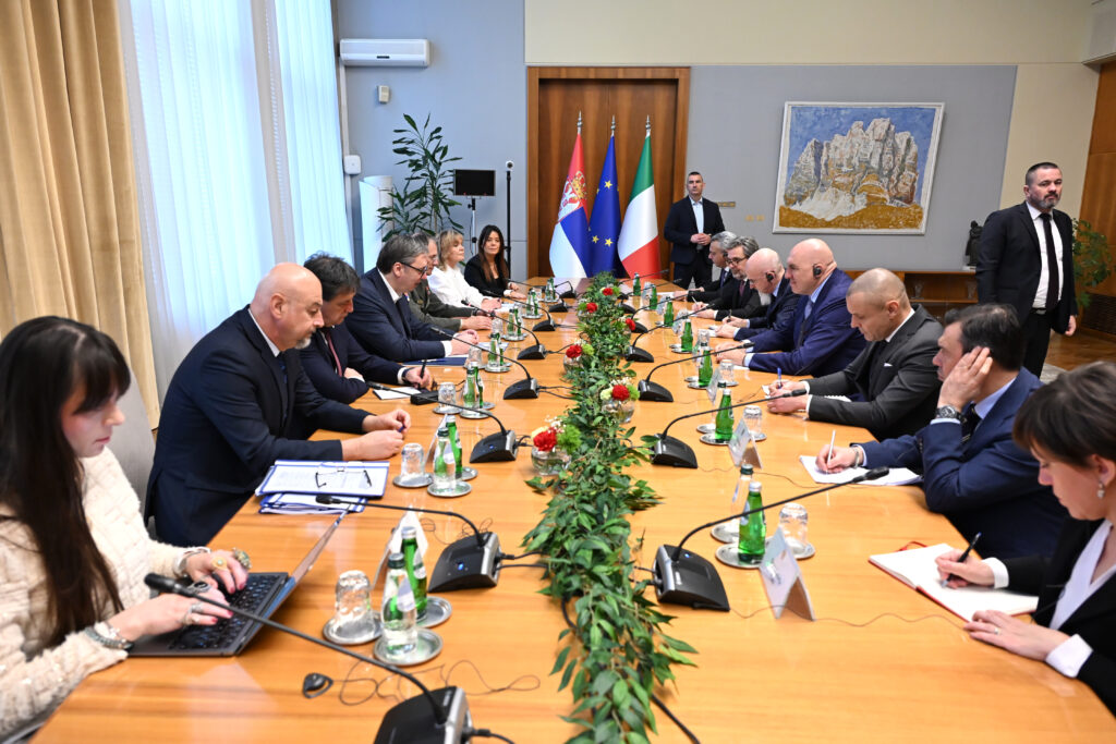 Predsednik Srbije Aleksandar Vučić razgovarao je u Beogradu sa ministrom odbrane Italije Gvidom Krozetom o jačanju bilateralne saradnje, posebno u domenu odbrane, situaciji na Bliskom istoku i aktuelnim kriznim žarištima, kao i o ulozi Srbije i Italije u novim međunarodnih okolnostima. Vučić je sastanak sa Krozetom ocenio kao odličan, navodeći da su razmotrili glavne aspekte sve složenijeg globalnog bezbednosnog konteksta. “Posebnu pažnju posvetili smo aktuelnim kriznim žarištima i posledicama po stabilnost Evrope i Mediterana, ali i šireg međunarodnog poretka. Ponovio sam da su savremene bezbednosne pretnje nepredvidive, uz visok rizik od prelivanja sukoba, što najbolje pokazuje i aktuelni konflikt širom Bliskog istoka“, naveo je Vučić u objavi na Instagramu. Izrazio je zabrinutost zbog daljeg razvoja situacije na Bliskom istoku, kao i na Zapadnom Balkanu u kojem, kako je ukazao, odnedavno postoje i novi vojni savezi koji ne doprinose očuvanju stabilnosti i opštoj bezbednosti i koji bespotrebno podižu tenzije. “Istakao sam da svaka destabilizacija oba regiona ima direktne posledice i po evropsku bezbednost, energetsku stabilnost i globalne tokove trgovine. Ponovio sam da je dijalog jedini put ka trajnom rešenju i da je neophodno ulagati dodatne napore u smirivanje tenzija“, naveo je Vučić. Dodao je da je razgovarano i o potrebi bolje koordinacije i razmene informacija među partnerima u cilju ublažavanja posledica regionalnih sukoba. Vučić je naglasio da Srbija ostaje posvećena politici mira i vojne neutralnosti, ali i otvorenoj saradnji sa partnerima kao što je Italija. “Uveren sam da ćemo kroz intenzivniji politički i odbrambeni dijalog dodatno osnažiti naše odnose i zajednički doprineti stabilnosti regiona u vremenu velikih globalnih izazova“, istakao je predsednik Vučić.